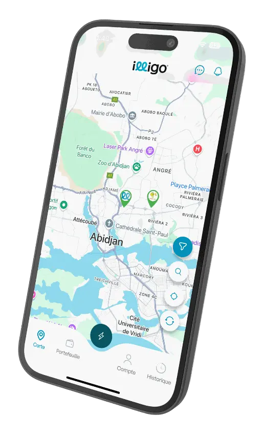 Le must-have pour localiser les stations de charge sur une carte, se charger et payer en mobile money en un click !